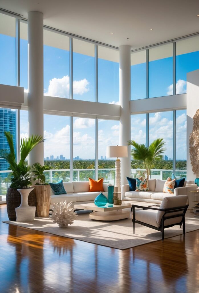 Durable, moisture-resistant materials like teak wood and stone are common. I also see a focus on shades and curtains that protect from intense sun while maintaining brightness. This blend of function and style defines Miami’s distinctive interior look.