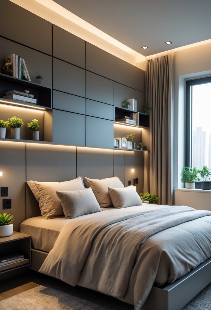 Wall-mounted headboards with shelves save space while adding storage near the bed. They keep essentials like books, phones, or alarm clocks within easy reach.