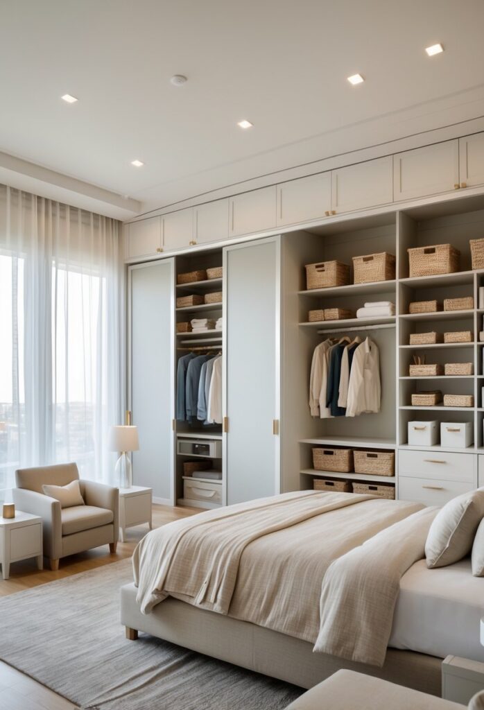Another idea is installing window seats with storage underneath. This adds seating and a hidden spot for items. Built-in nightstands or headboards with shelves also provide easy access to essentials without crowding the room. These solutions make the bedroom more efficient by using unused or awkward spaces.