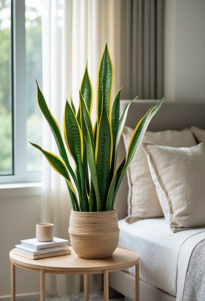 The snake plant is known for its ability to purify indoor air. It removes toxins and improves air quality, making bedrooms healthier.