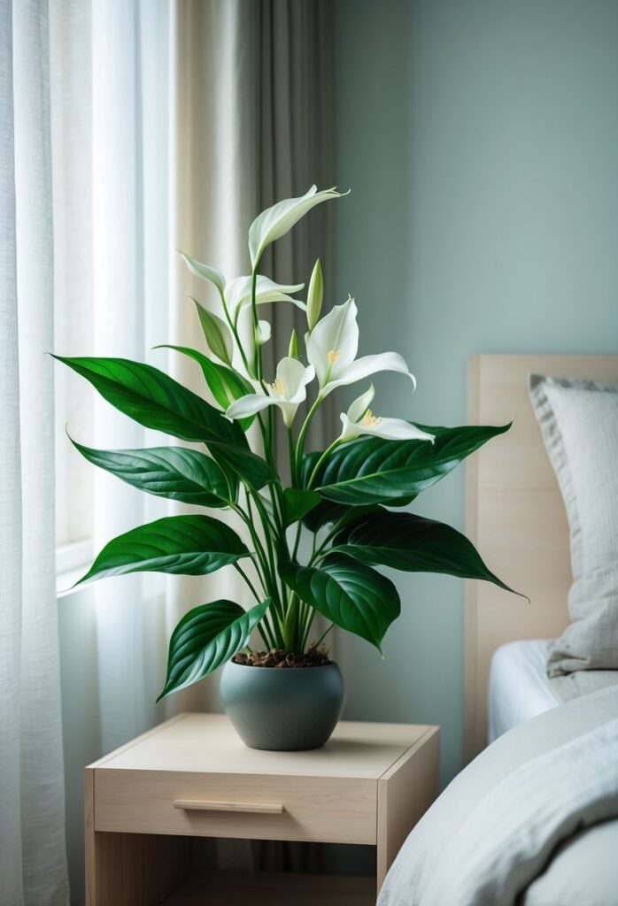 Some plants also help regulate humidity and oxygen levels in the bedroom. For example, peace lilies and aloe vera release oxygen at night, which can improve breathing and create a fresher atmosphere. Better air and calming scents help reduce disturbances during sleep.