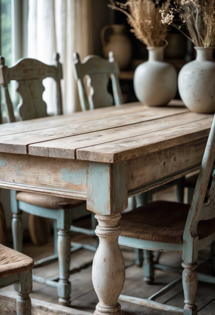 Antique finishes like distressed paint or worn edges give pieces a rustic feel. These details make the furniture feel lived-in and authentic.