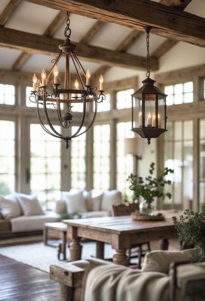 A vintage-inspired chandelier or a simple lantern can highlight a dining area or entryway. They help balance elegance with a cozy, countryside style. French country lighting adds both function and beauty.