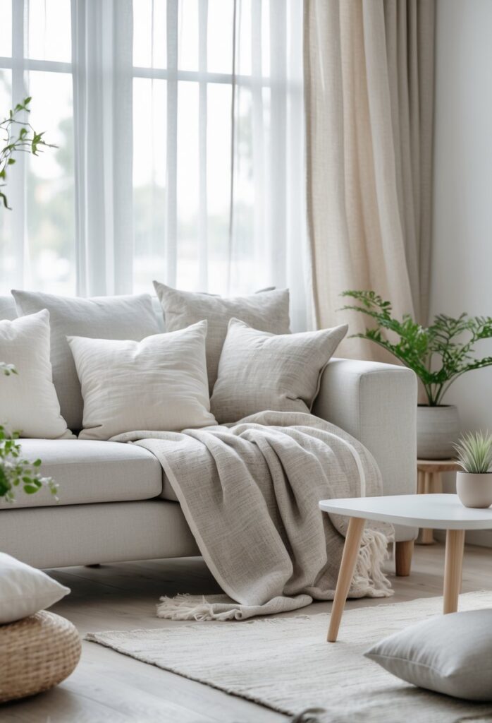Textiles also play a big role. Linen, cotton, and wool with simple weaves add softness without clutter. These fabrics contribute to a cozy yet clean feel.