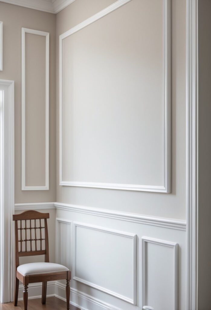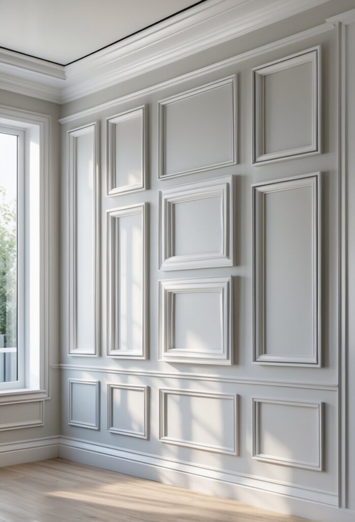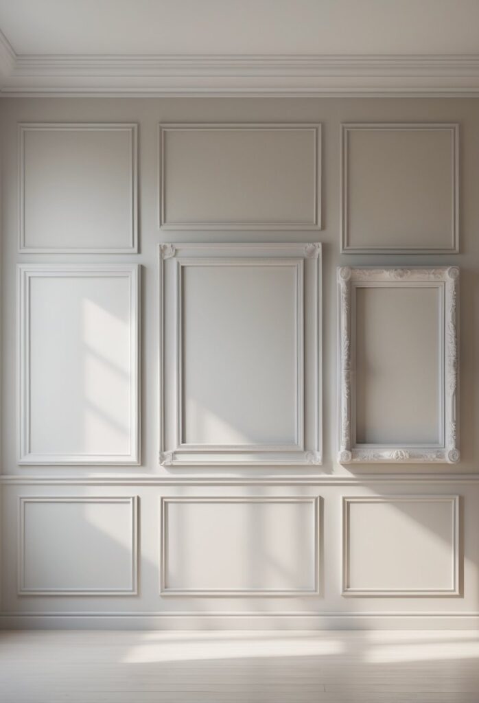 This style is easy to plan by marking outlines with painter’s tape before installing the molding. It can make a plain wall stand out with subtle texture and structure.
