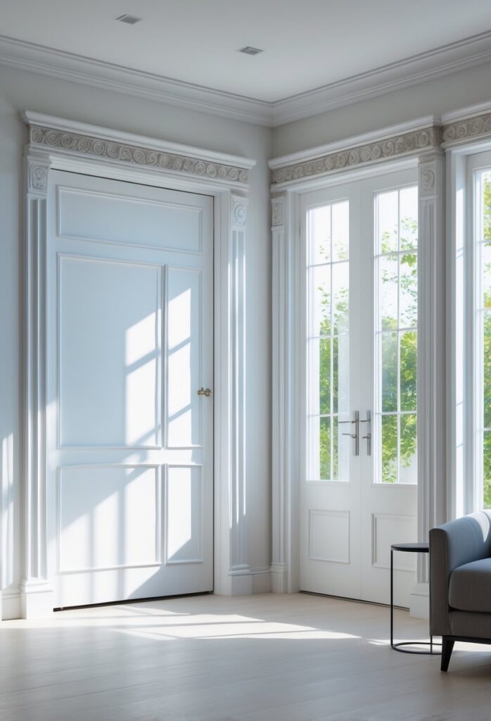 The minimalist approach works well in modern or clean designs. It highlights the room’s lines and shapes clearly. Plants or furniture provide gentle contrast without competing with the molding.