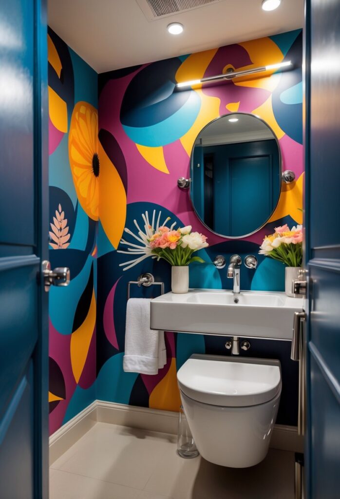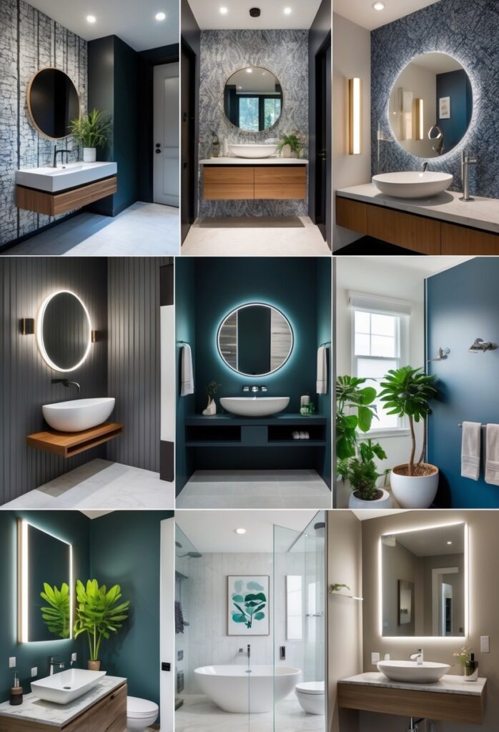 Using dark or rich colors adds depth and drama. Pairing bold wallpaper with simple fixtures keeps the look balanced.