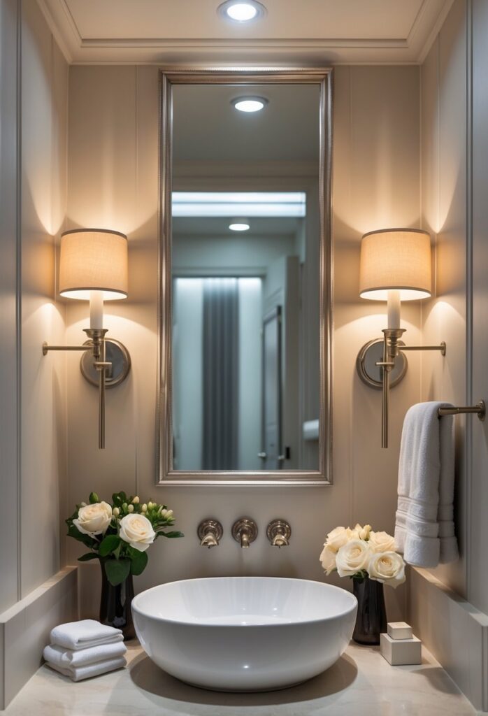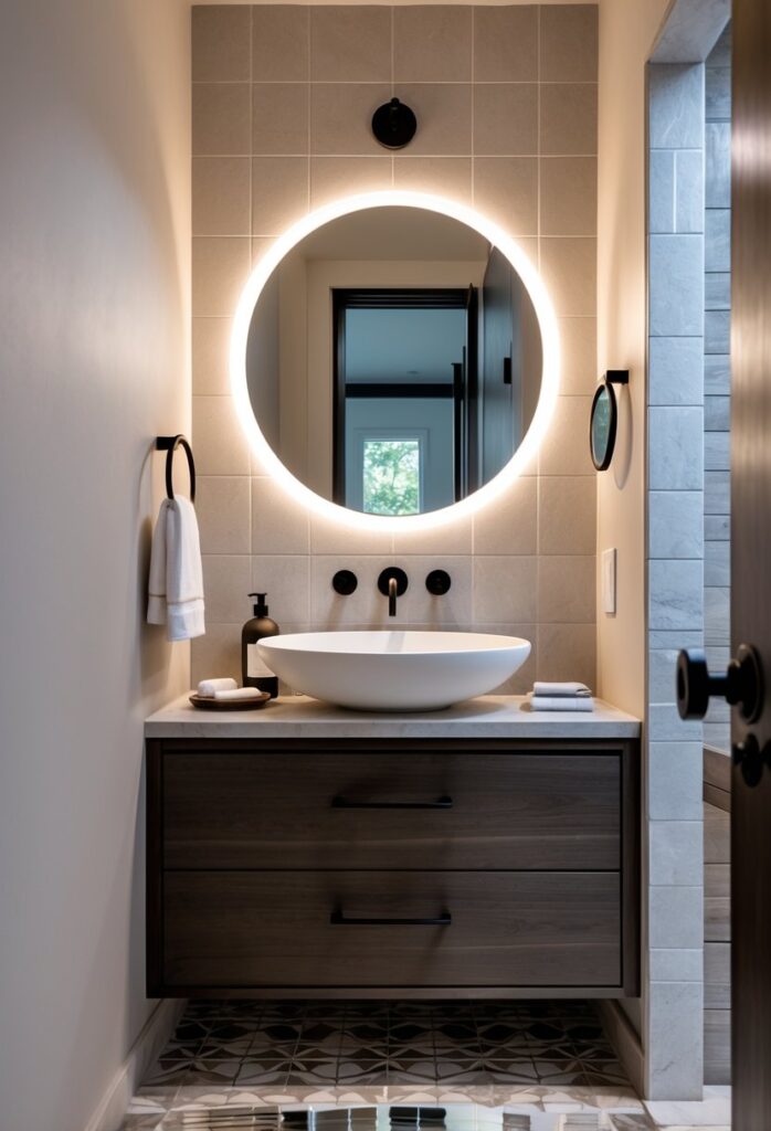 A statement mirror can change a powder room’s look with little effort. Bold shapes or unique frames draw attention and create a clear focal point in the space.