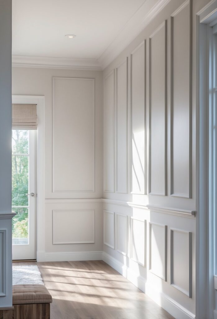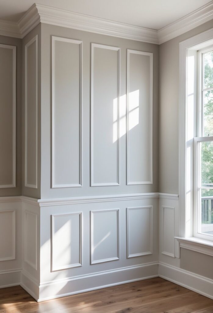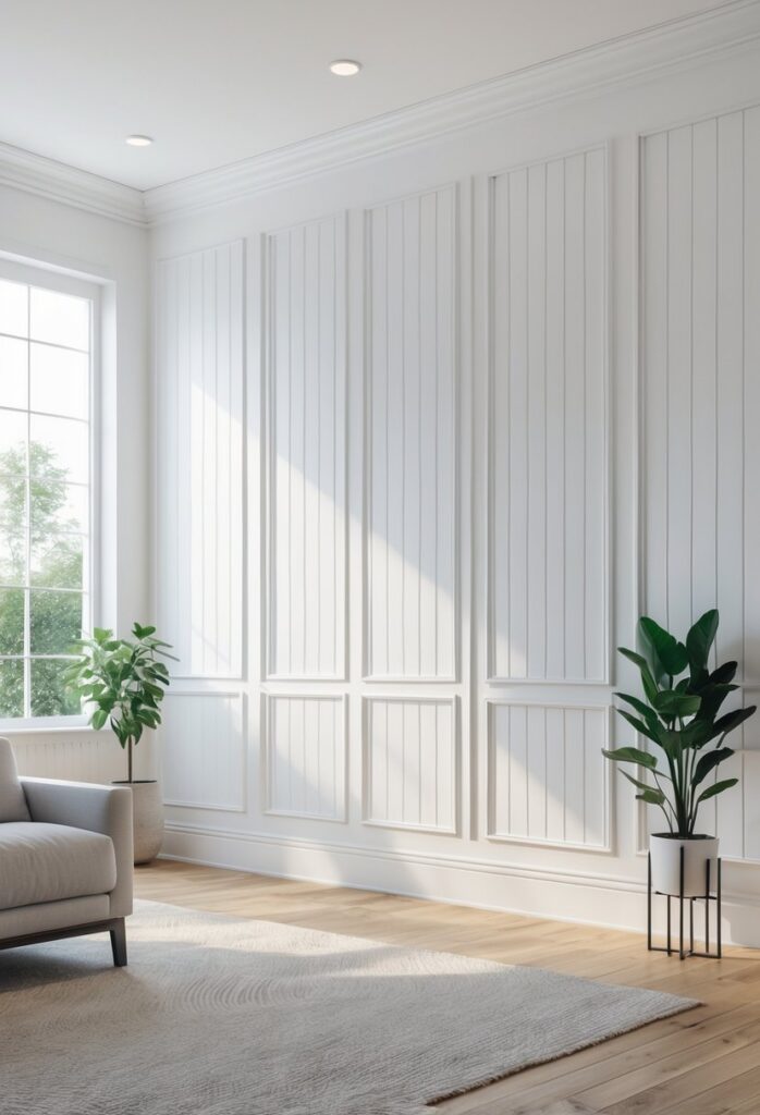 This style uses simple flat panels framed by trim. It adds subtle texture without overwhelming the room.