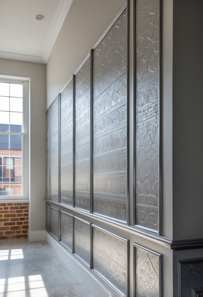 Available in many patterns, embossed metal panels can fit both traditional and modern interior styles. They come in materials like steel or copper for varied finishes.