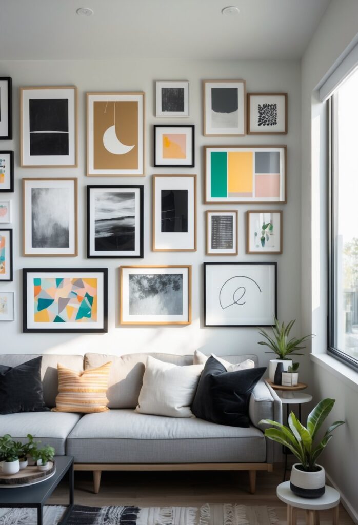 This approach works well in living rooms, bedrooms, and hallways. It reflects personality and style through a blend of meaningful images and art.