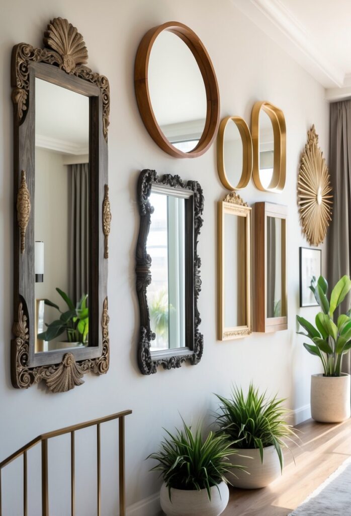 Unique frames give mirrors personality. Shapes like sunbursts or geometric designs stand out and add style.