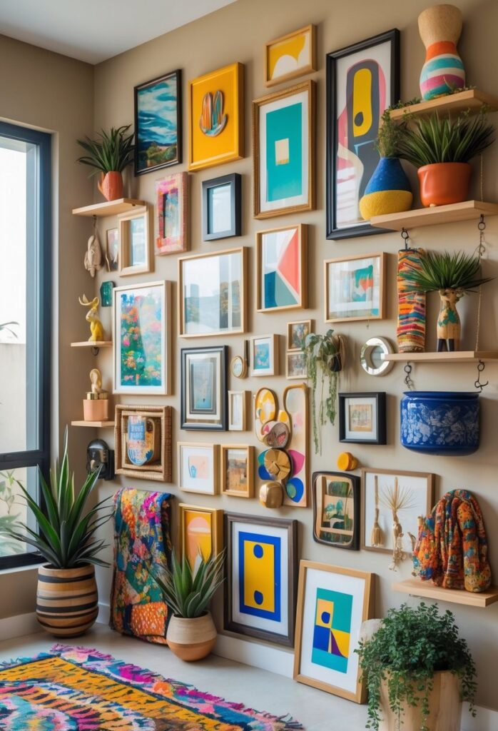 6) Maximalist walls with layered artwork and objects