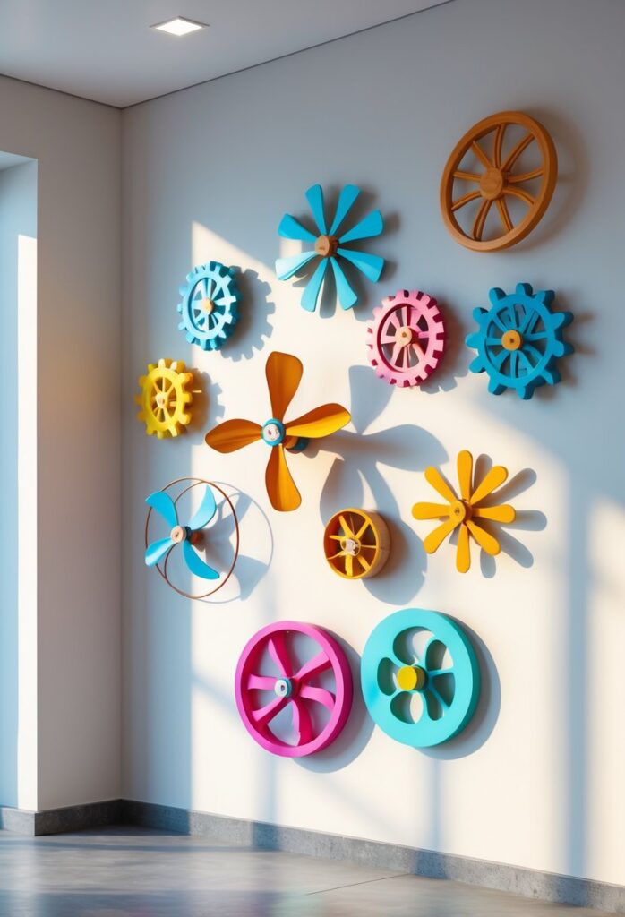 Rotating toy installations add movement and fun to walls. They catch the eye and create interest without cluttering space.