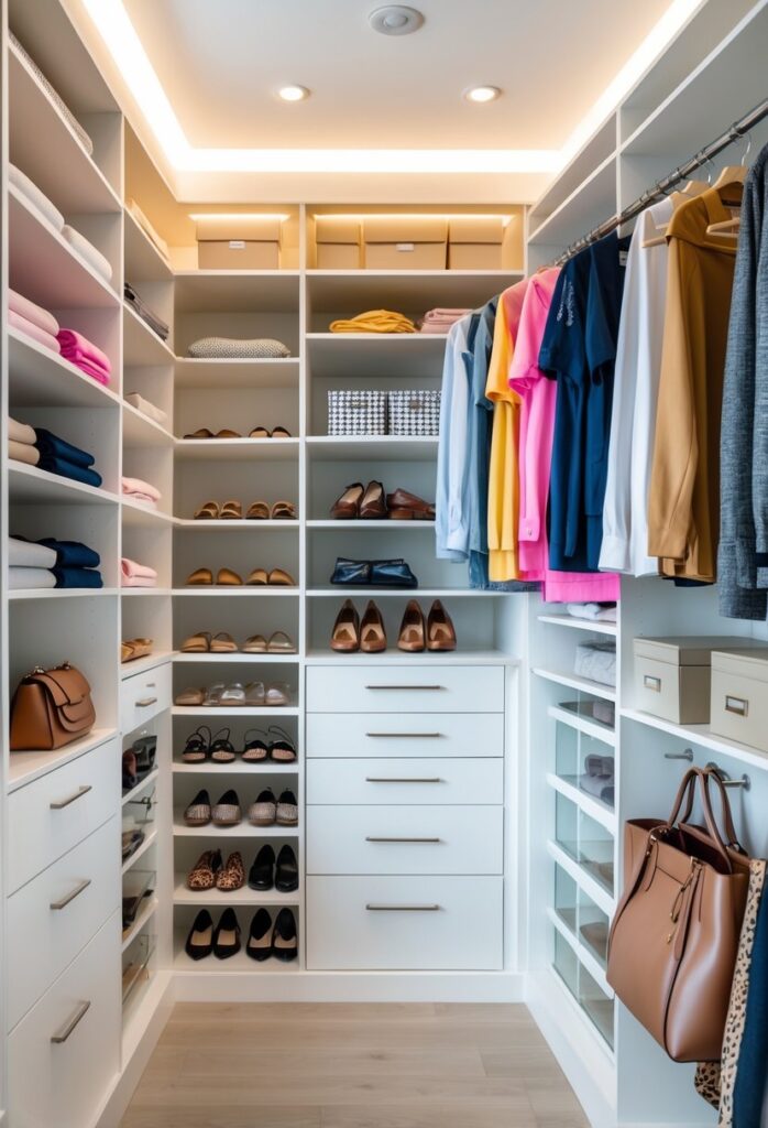 Drawers work well for clothes, shoes, or small accessories. Using dividers inside can separate items and keep things neat.