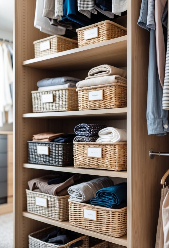 For more tips on using baskets in closets, check out small closet organization ideas for 2025.