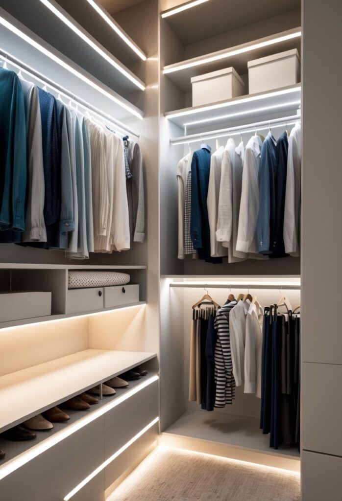 Proper lighting also reduces shadows. Shadows can hide clothes or accessories, making the space feel smaller. Built-in lights create a more open and organized appearance.