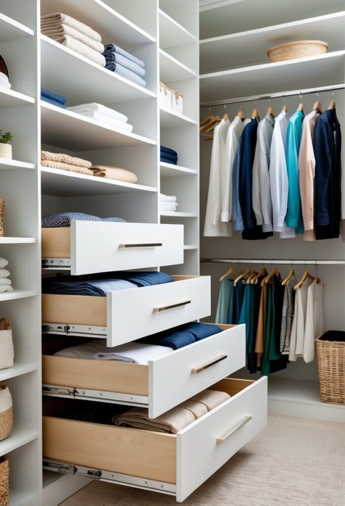 For more ideas on maximizing closet space with drawers, see this useful guide on pull-out storage solutions.