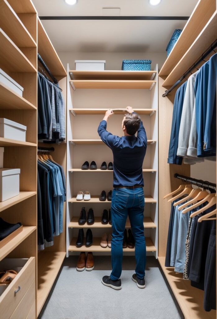 They can move shelves up or down to fit different items like shoes, clothes, or boxes. This flexibility helps make the most of the available space.