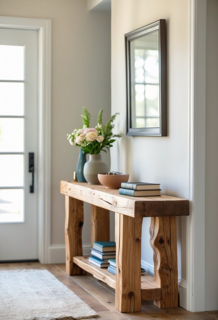 3) Rustic Wood Hallway Table