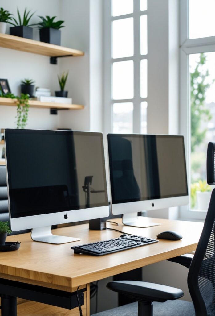 Adding other accessories like an adjustable chair and proper lighting improves the overall setup. Good cable management keeps the desk neat and organized.