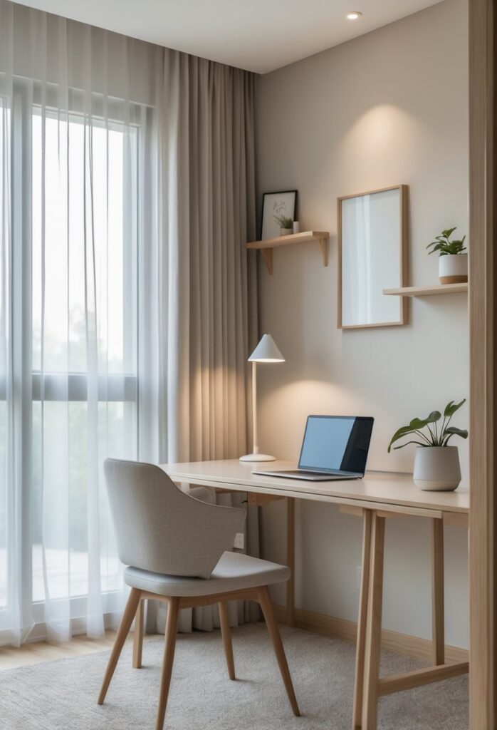 A neutral palette lets accessories stand out without cluttering the space. It supports a balanced and organized work environment.