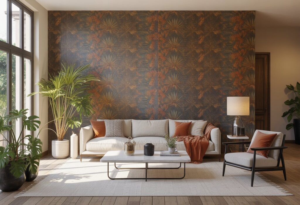 A focal wall with bold, textured wallpaper can change the look of a living room quickly. It draws attention and adds depth to the space. Instead of using plain paint, textured wallpaper offers a unique feel that paint alone cannot achieve.