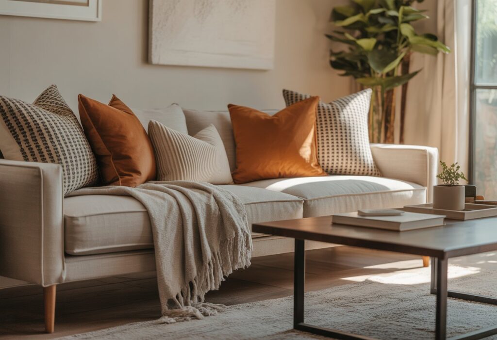 Pairing geometric patterns with softer shapes can offer a modern yet comfortable feel. Throw pillows give an easy way to update the room’s style without major changes.