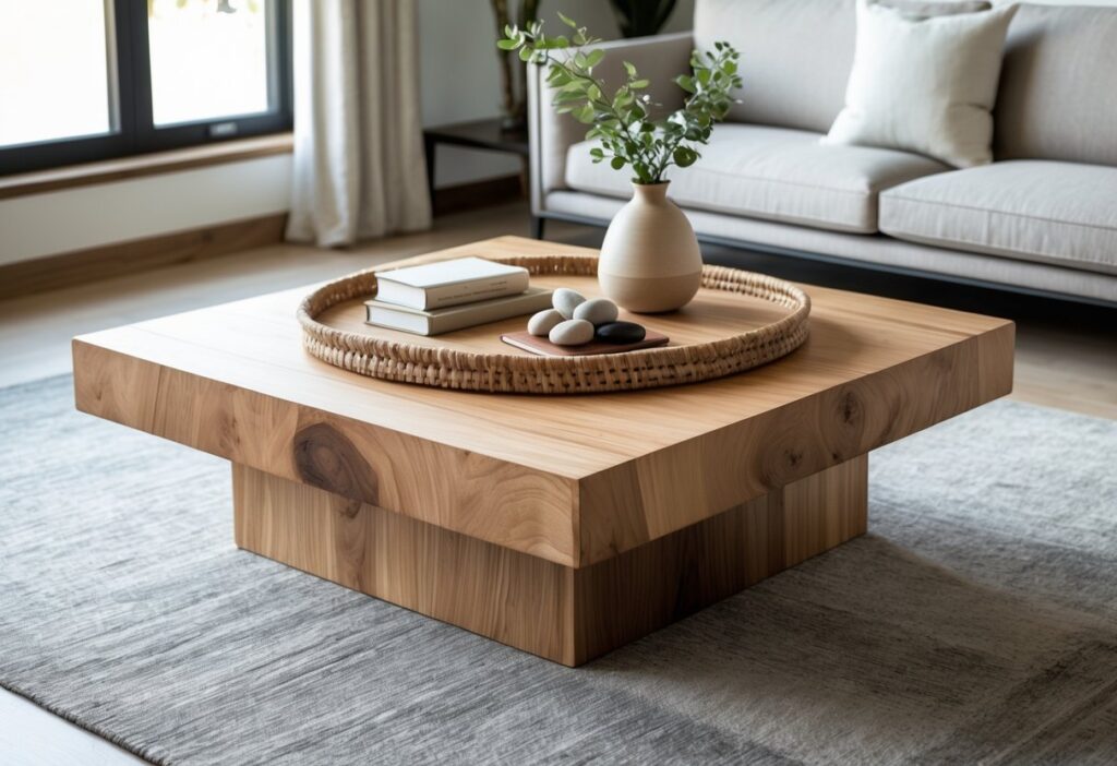 Styling the coffee table with simple, eye-catching items adds personality without clutter. Natural elements, such as bowls with stones or woven trays, create a calm, inviting feel. Layering a few decorative pieces helps balance the look and connects the table with the rest of the decor.