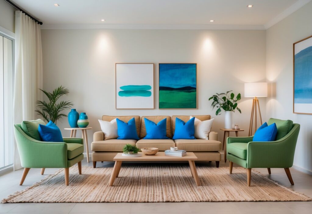 Neutral tones like beige, gray, or soft white create a calm base. Adding one or two accent colors with pillows, rugs, or art adds interest without overwhelming.