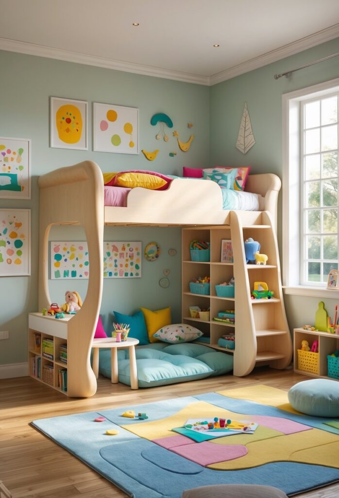More ideas on combining loft beds with play areas can be found in creative children’s bedroom designs. For details, see the Whimsical Loft Bed with Play – Designer Review & Photo.