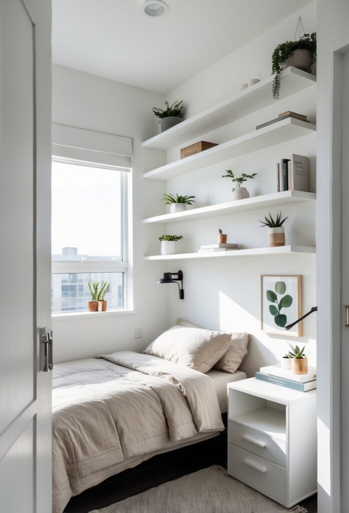Using floating shelves can turn empty walls into useful storage areas. For ideas on styling and placement, see this guide on floating shelves for small bedrooms.