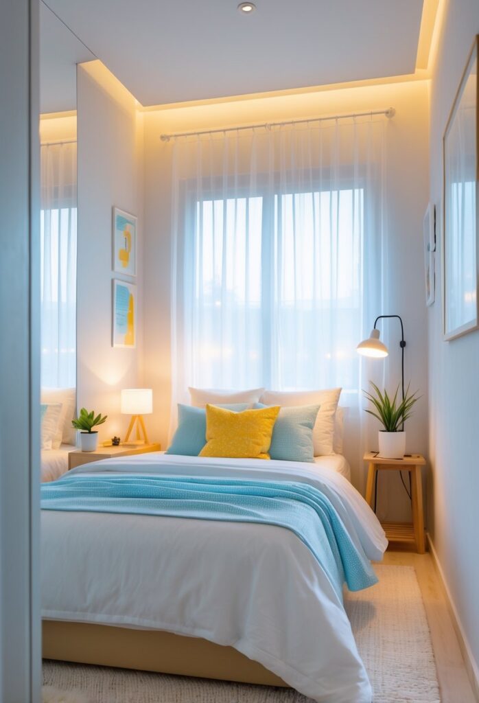 Using light and color smartly can make a small bedroom feel much more open and comfortable. Thoughtful placement and choice of colors help brighten the room and add depth without crowding the space.