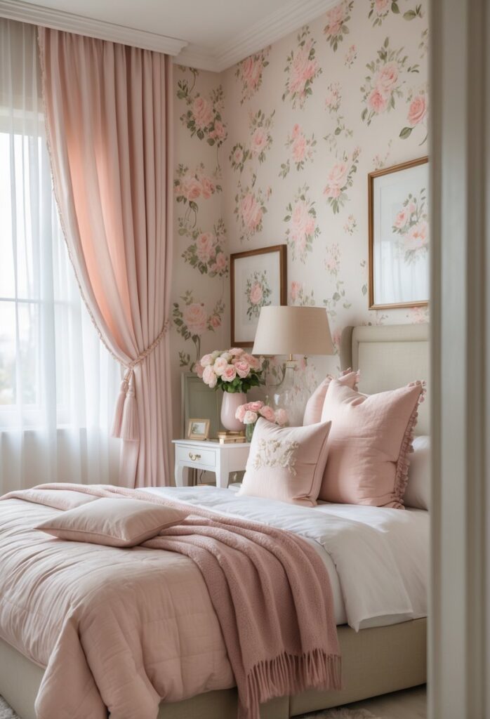 Choosing wallpaper with subtle vines or pastel flowers enhances the room’s charm. It balances elegance with comfort, making the bedroom feel personal and warm.