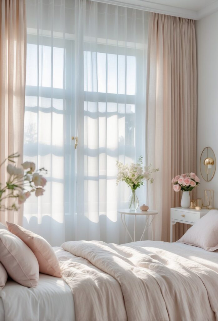 Using sheer linen layers can brighten the space while keeping privacy. This choice helps bring in natural light softly for a cozy atmosphere.