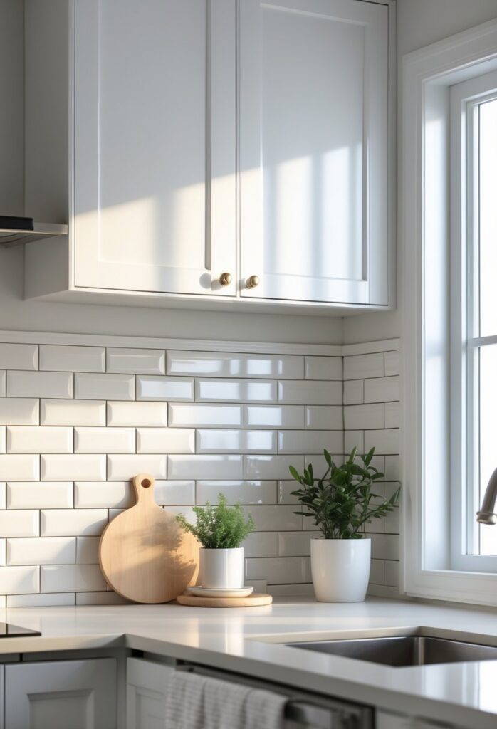 White subway tile works well with various cabinet colors and countertop materials. Its neutral tone lets other design elements stand out.