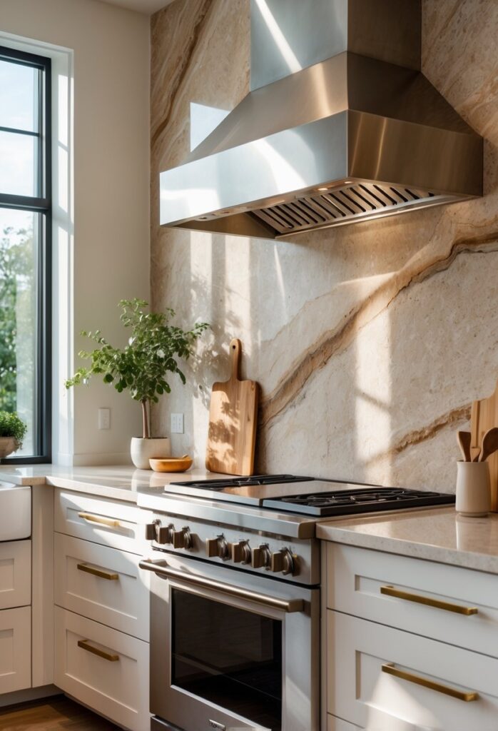Natural stone slabs offer a clean, seamless look for kitchen backsplashes. They create a smooth surface with few visible joints.
