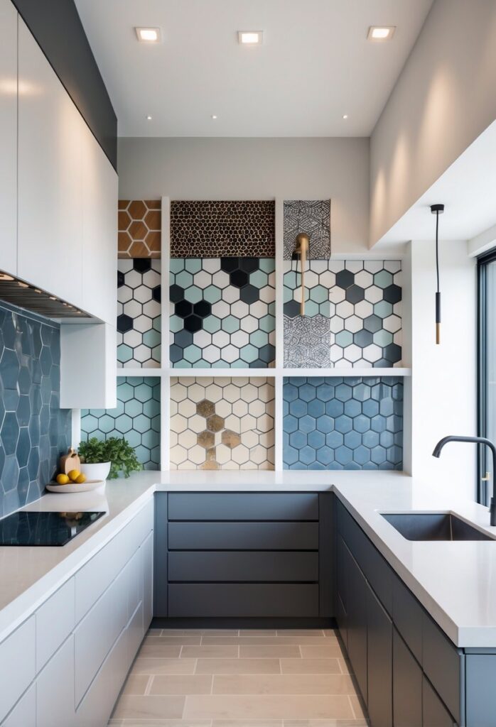 Using light-colored hexagons can brighten up the kitchen, while darker tiles create a striking contrast. This style brings a timeless yet trendy appeal to the space.