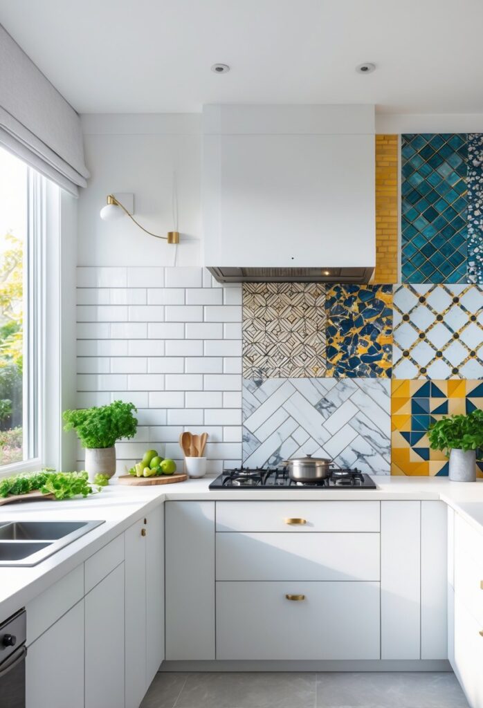 They work well in both small and large kitchens. Patterned tiles can become a focal point or complement other design elements.