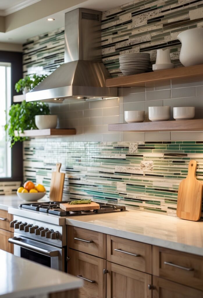 Glass mosaic tiles are also easy to clean. Their smooth surface resists stains and moisture, making them a practical choice for busy kitchens.
