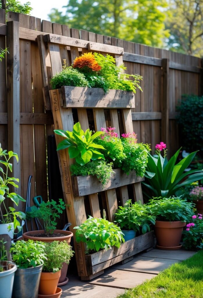 Using pallets for garden planters is also eco-friendly. It repurposes old wood that might otherwise be thrown away. This approach saves money while giving the garden a unique style. More creative pallet garden ideas can be found in detailed guides like the ones from DigsDigs and Prudent Penny Pincher.