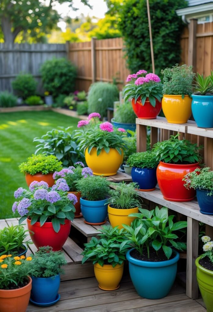 A multi-level terrace garden uses different height levels to create more planting space. It works well on sloped yards, helping with drainage and soil retention. This design suits small and large areas alike.