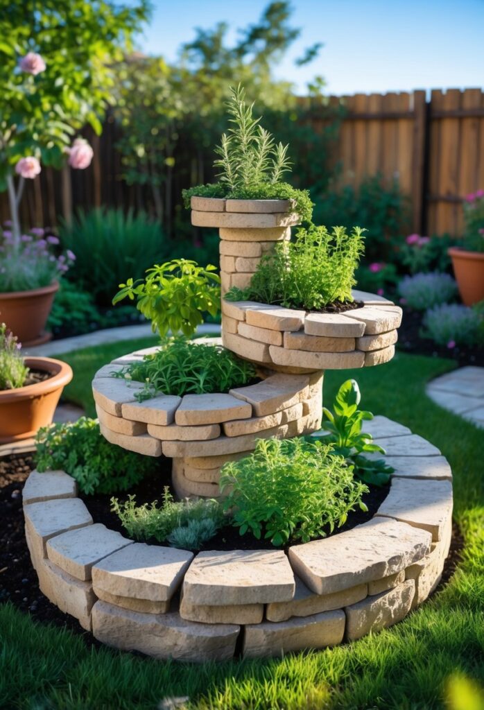 The stones used in the spiral hold warmth, helping herbs like thyme and basil grow well. The design also makes it easy to reach each herb for harvesting without bending too much. This practical garden setup fits well in most backyard spaces.