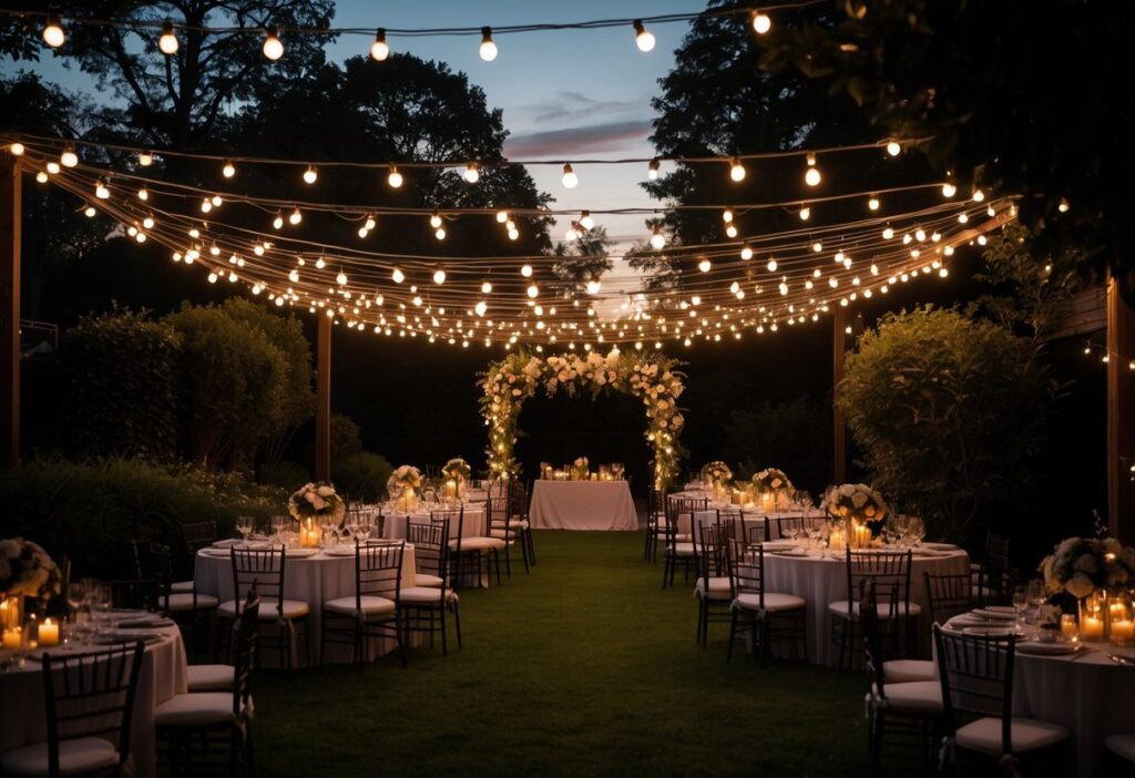 Lighting is crucial to set mood and ensure safety during a backyard wedding. String lights draped above creating a warm and inviting canopy are popular choices. Lanterns or candles along pathways add charm and guide guests.