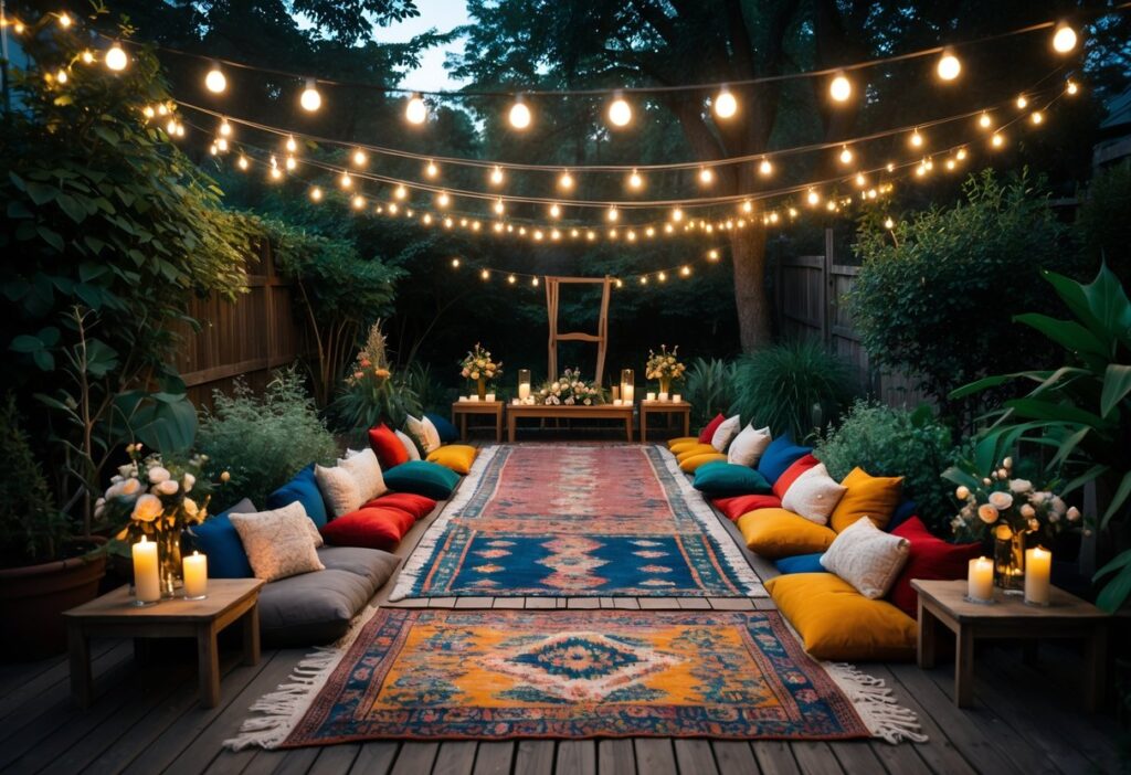 Adding a string light canopy or a rustic arch instantly changes the space’s feel. Incorporating natural elements such as flowers and greenery for décor adds charm. Setting comfortable lounge areas invites guests to mingle and enjoy the event.