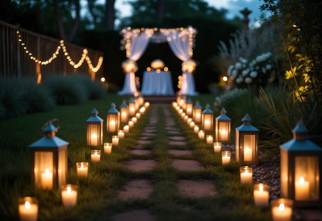 Candle-lit pathways add a soft, warm glow that guides guests through the backyard space. Using lanterns or votive candles creates a charming and inviting atmosphere for the wedding.