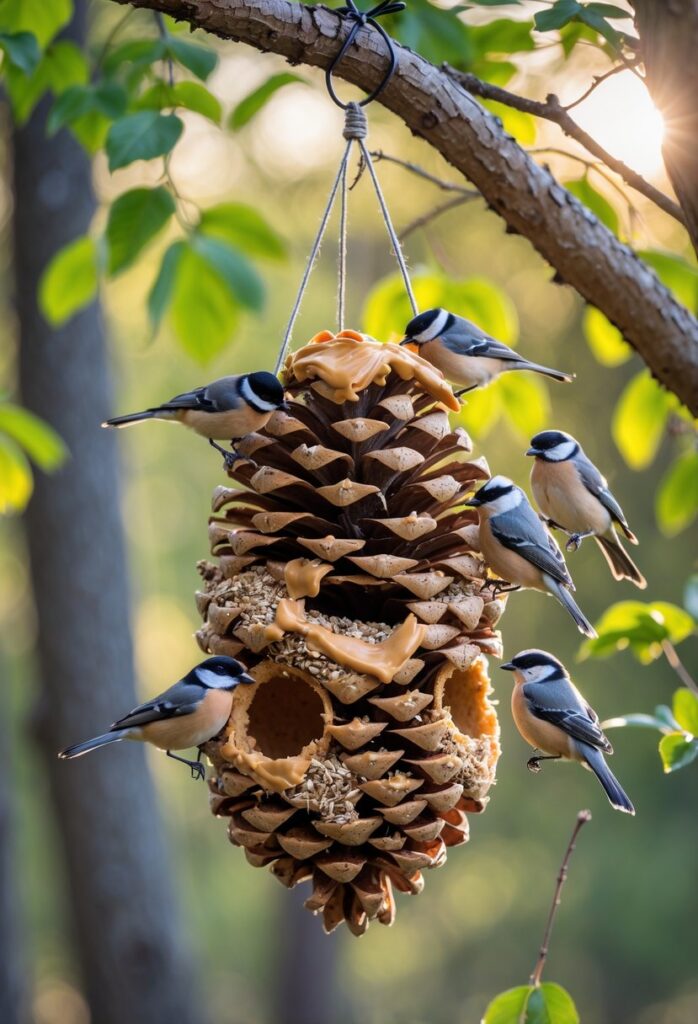 This project requires simple materials and little time. It is safe for most birds and attracts different species to your yard. The peanut butter pinecone feeder is popular because it is affordable and fun to make for people of all ages. For more details, see how to make a hanging pinecone bird feeder with peanut butter.