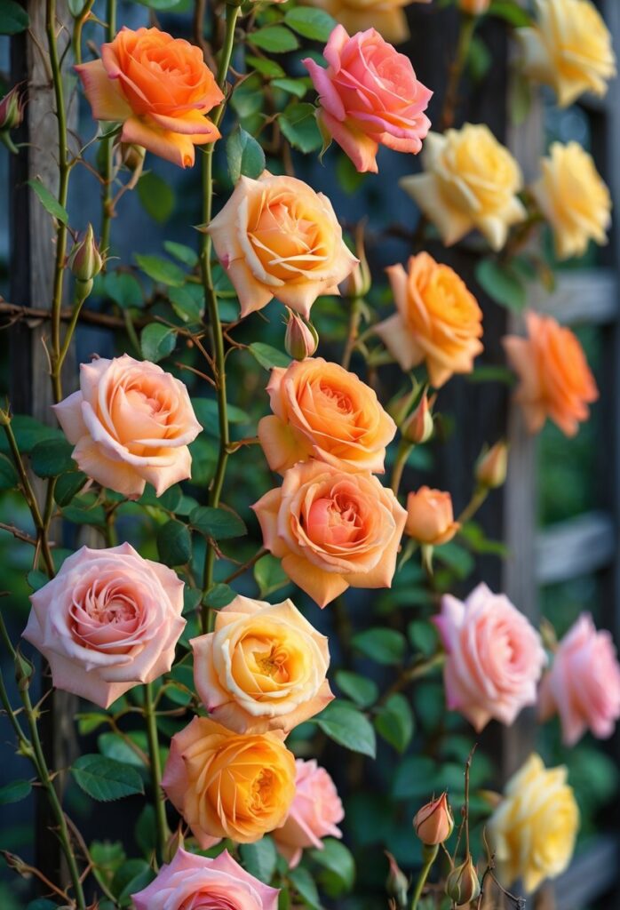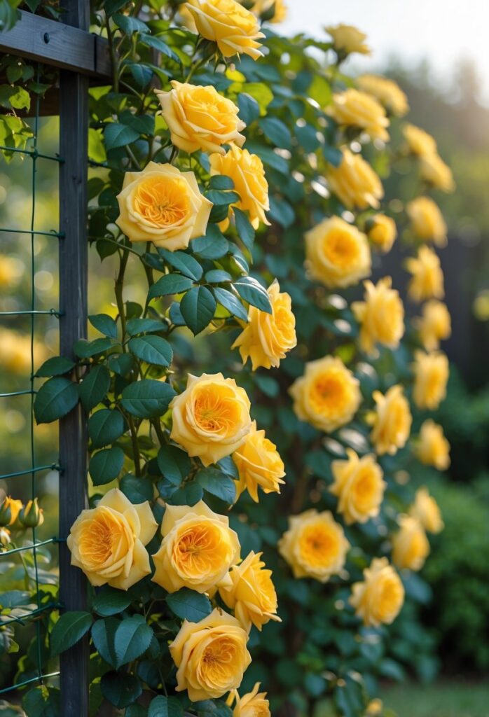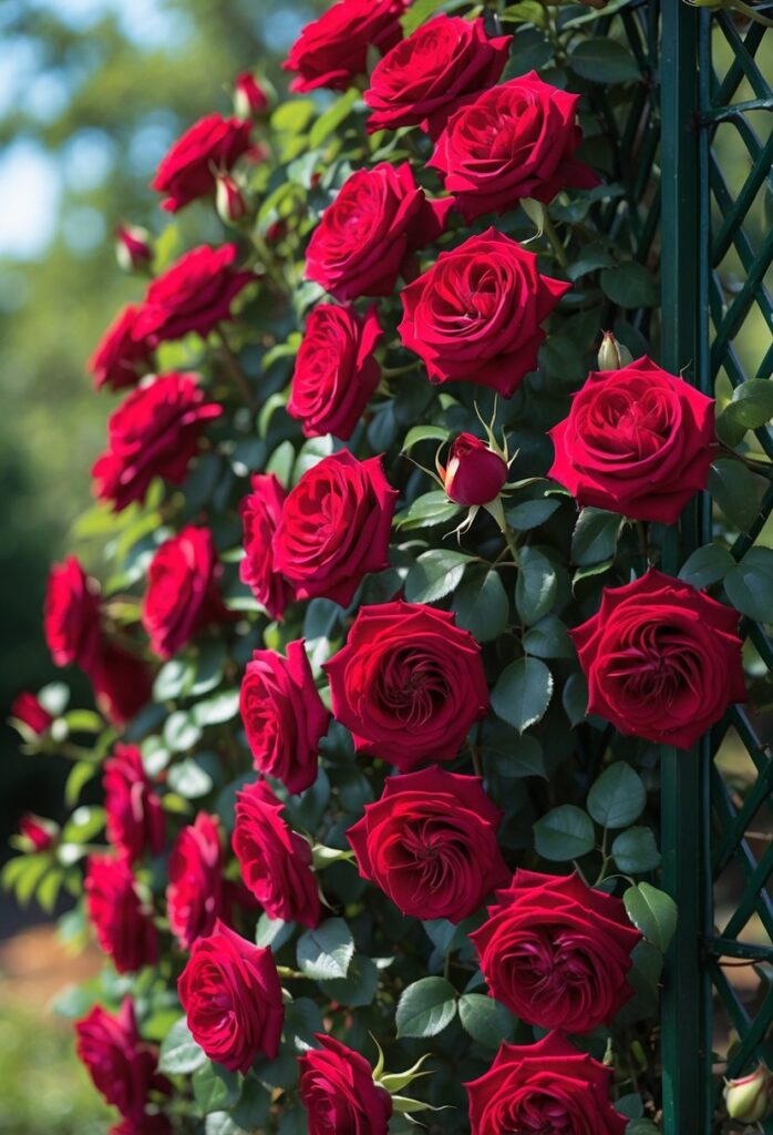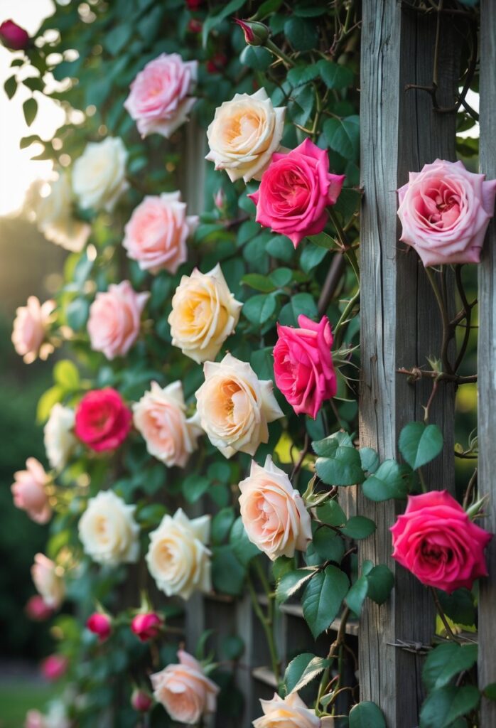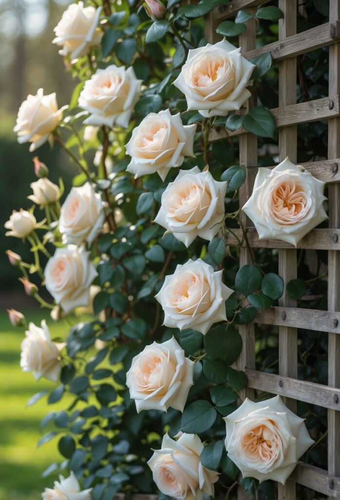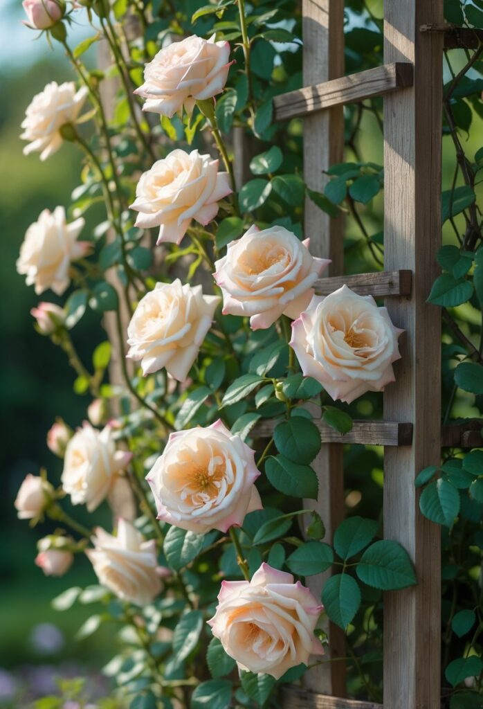 Climbing roses work well to create vertical accents on walls, fences, trellises, or archways. These structures support their long canes and help display the flowers fully. Trellises can be simple wooden panels or metal frameworks, depending on the garden’s style.