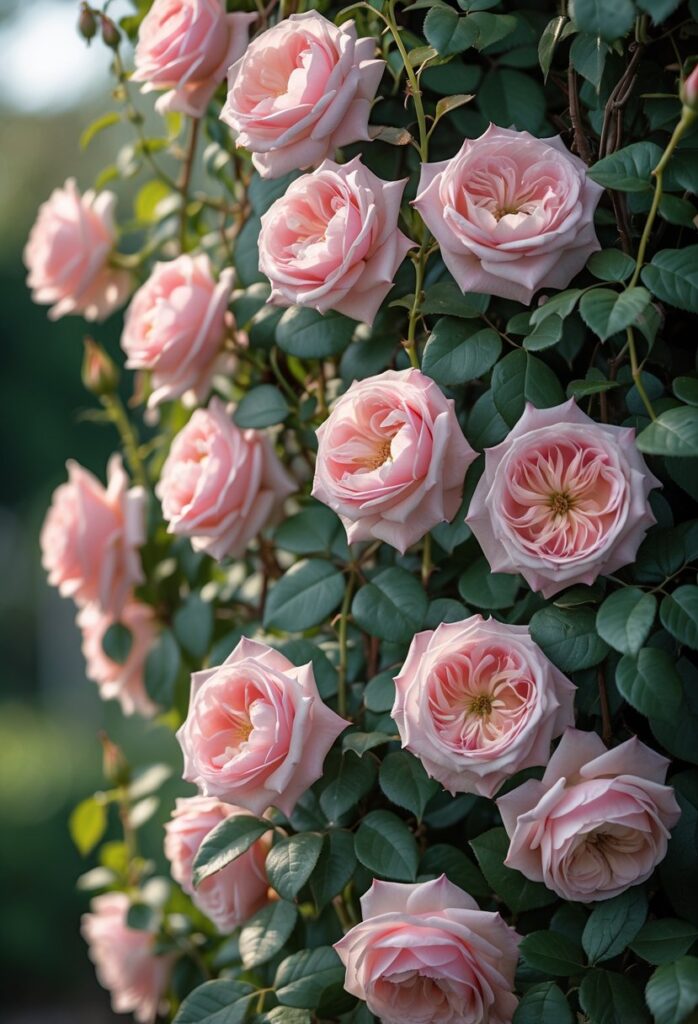 Most climbing roses grow between 8 to 15 feet tall. Some varieties, like ‘Eden Rose (Pierre de Ronsard),’ can reach up to 20 feet if properly trained and supported.