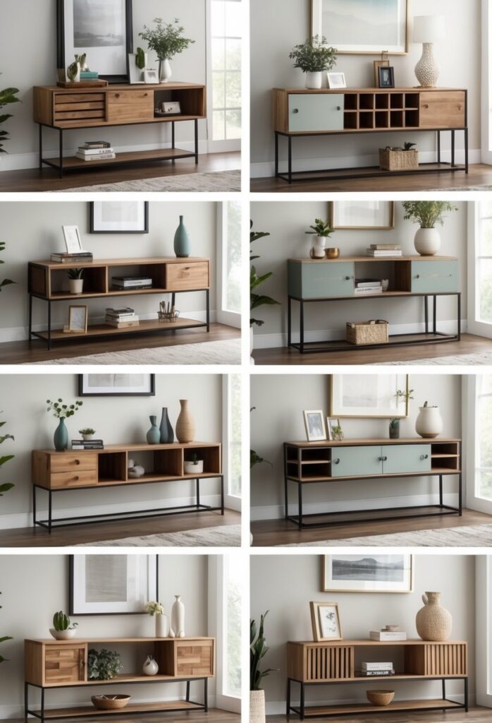 Eight-inch console tables come in many design styles to suit different décor needs. Farmhouse styles often feature wood finishes with metal accents for a rustic look. Modern designs lean toward clean lines, smooth surfaces, and minimal ornamentation.